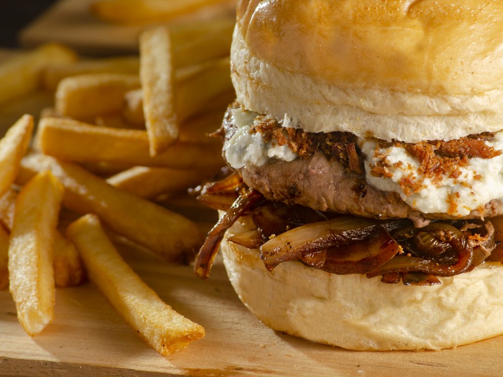 Burger artesanal de carne 160g, cebola caramelizada, molho gorgonzola e bacon frito. Intenso, marcante e cheio de personalidade.